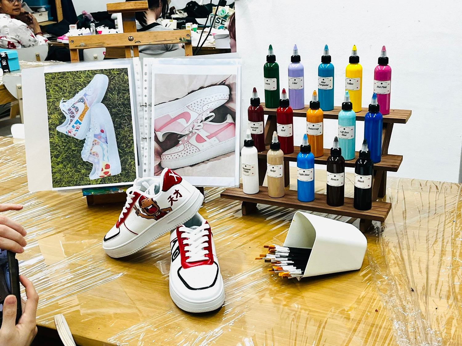 Our Sneaker Painting Workshop brings your team together in a relaxed, hands-on, and inspiring setting.