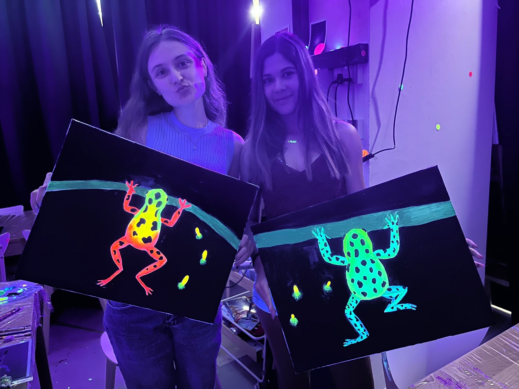 Under enchanting blacklights, kids create glowing masterpieces using vibrant UV paints, guided by our fun and friendly instructors. It’s interactive, unique, and guaranteed to keep everyone smiling from start to finish!